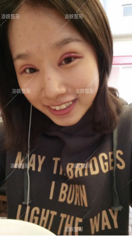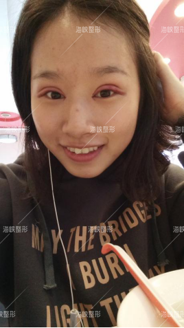 今天几乎就只有一点点肿了,看看是不是自然了很多啊,连带五官都上了个档次~这两天出门我都不用带眼镜了,因为不注意看其实基本就看不出割过的痕迹~我朋友都说的眼睛形状特别好看,我也很满意,很开心。